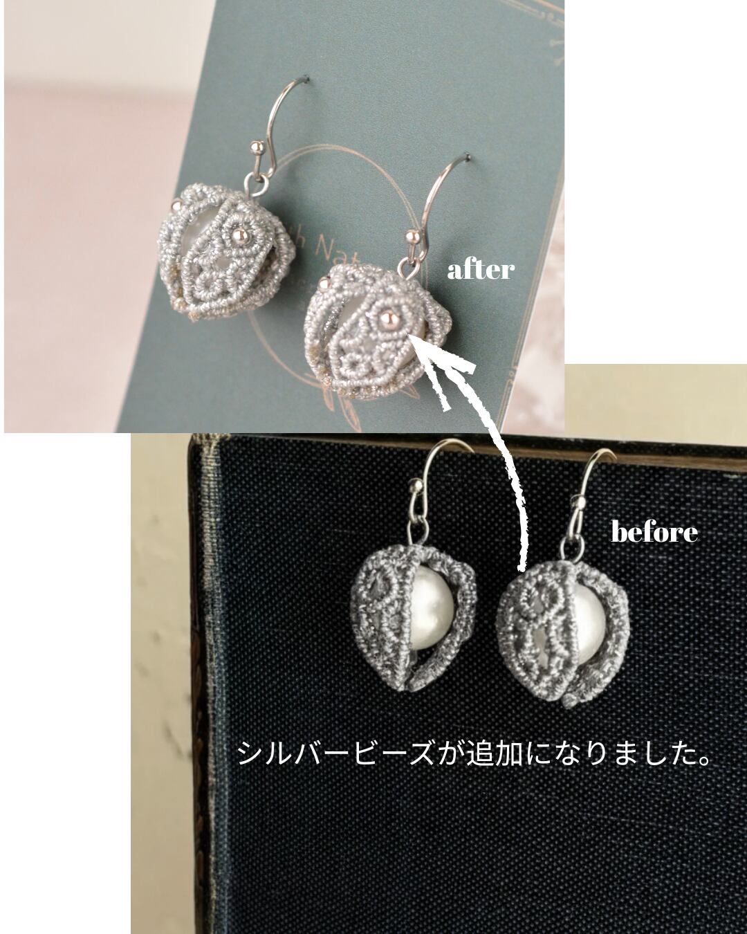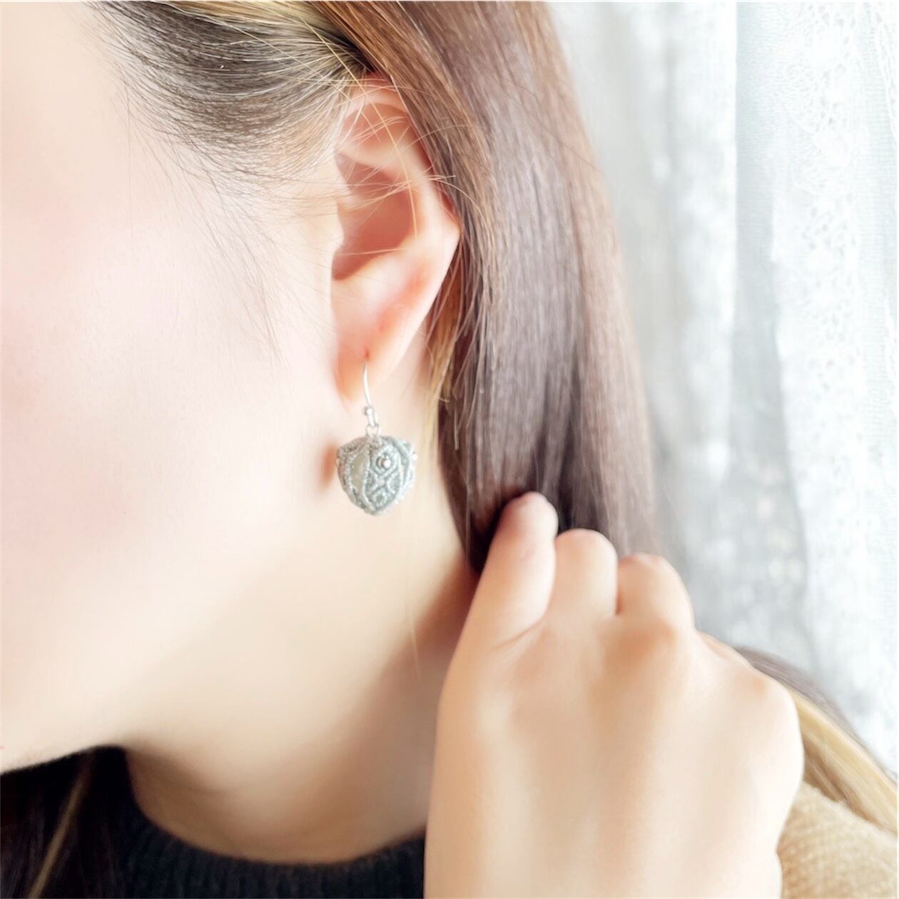 小ぶりの耳飾りは品のあるシックな装いに合うアクセサリーになりました。